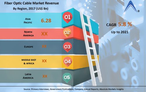 2017年全球光纖電纜商場(chǎng)規(guī)模約為110.7億美元,其間亞太區(qū)域是最大的區(qū)域商場(chǎng),到達(dá)62.8億美元,其次是北美和歐洲。